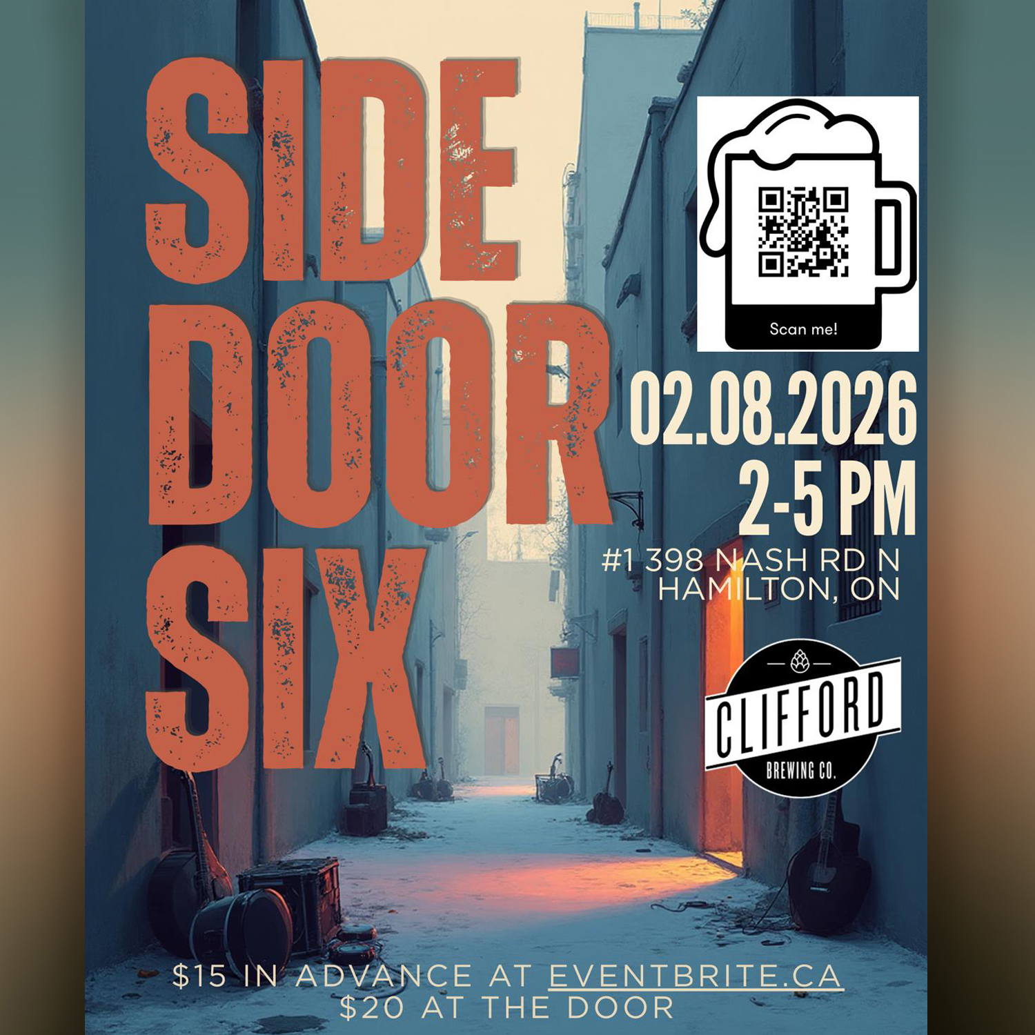 Clifford Brewing presents another Sunday matinee with Side Door Six — easygoing tunes, good vibes, and just enough energy to keep the afternoon rolling. Hotbox Pizza on site for all your cravings
